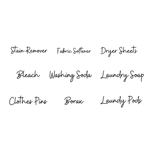 Laundry Room Organization Labels Decals Stain Remover, Dryer Sheets, Laundry Pods, Borax Storage Jar Tank Label Vinyl Sticker
