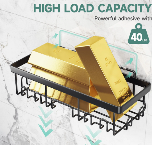 Adhesive Shower Caddy 6 Pack, Large Capacity Bathroom Organizers and Storage, No Drilling Wall-Mounted Basket, Black