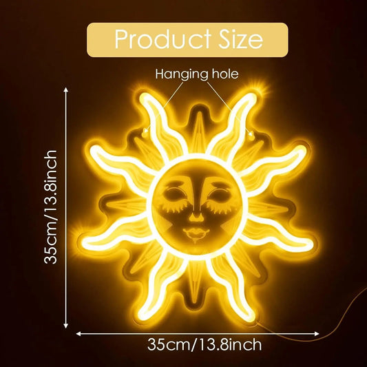 Sun Neon Signs for Wall Decor Sun Neon Led Sign for Bedroom Night Light Neon Decoration for Kids Girls Boy Room Birthday Party