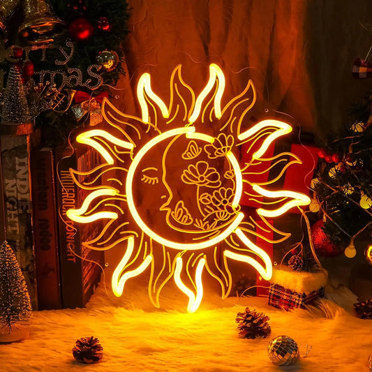 LED Retro Burning Sun and Moon Neon Wall Art Home for Bedroom Decoration Unique Large Aesthetic Light Name Neon Nightlight Room
