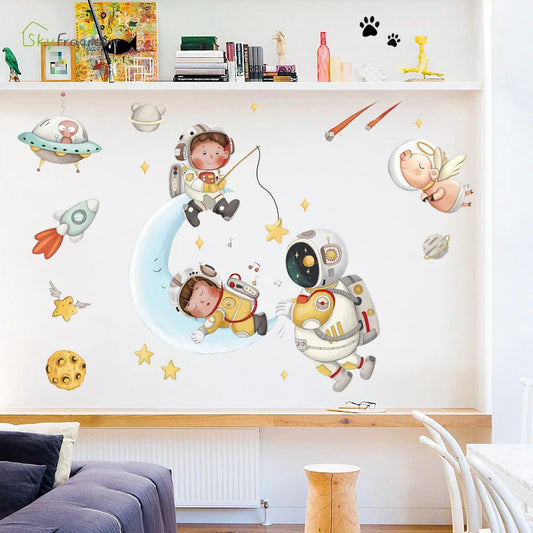 Creative Cartoon Astronaut Wall Stickers For Kids Rooms Baby Boy Bedroom Wall Decoration Home Decor Self-adhesive Vinyl Stricker