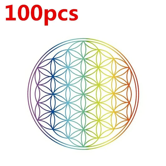 100pcs Flower of Life Energy Sticker Golden PVC Transparent 3cm Stickers