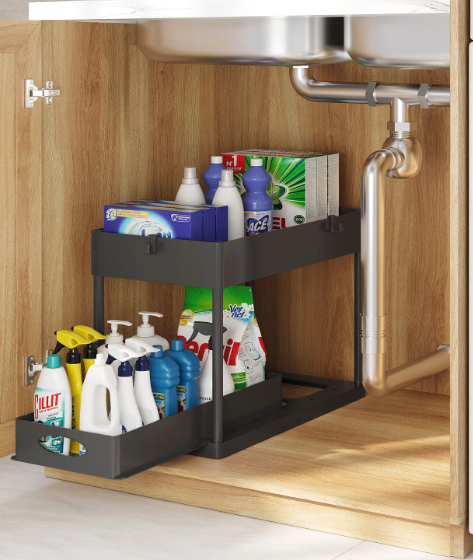 Storage Bud Under Sink Organizer and storage, Pull Out Bathroom Cabinet Organizer, Under Sink Storage for Kitchen Bathroom Cabinet, Under Cabinet Organizer, Black